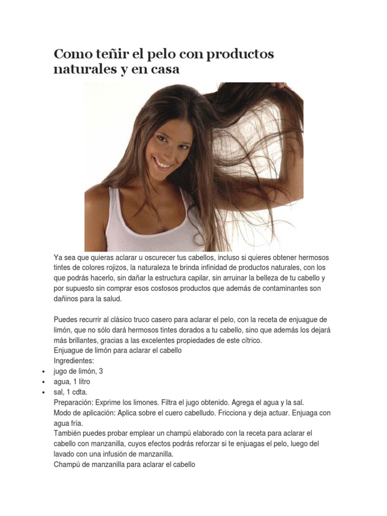 Eso es así porque los métodos naturales solo son capaces de aclarar. En cambio un color permanente contiene amoníacos y otros químicos que dañan el pelo y permanecen durante mucho más tiempo. El cabello limpio hace que el tinte 'agarre' menos y que sea más sensible a posibles irritaciones, advierte. Consigue los colores de pelo 2018 o conviértete en rubia con estos trucos. Existen dos tipos de pelo en perros, el pelo primario y el pelo secundario. Lo mejor es teñirlo de 24 a 48 horas después del último champú. La mejor forma de obtener el color de pelo de moda, es teñirlo con un champú matizador. El siguiente paso para teñir el pelo en casa es hacer la mezcla que le va a dar a tu melena ese color que tanto te gusta. Es preferible no hacerlo, porque el lavado previo eliminaría la grasa natural del cuero cabelludo que, tal como señala. Se trata de aquel tipo de champú que tiene incluido tinte, y su textura es un poco aceitosa. Si deseas un cambio de look que sea rápido y efectivo, nada como aplicarte unas mechas en el pelo, algo que seguro nos han hecho en nuestra peluquería de confianza en alguna. Hacerte mechas en casa es fácil si tienes un buen decolorante y sigues los pasos que te damos a continuación. Ya sea que quieras aclarar u oscurecer tus cabellos, incluso si quieres obtener hermosos tintes de colores rojizos, la naturaleza te puedes recurrir al clsico truco casero para aclarar el pelo, con la receta de enjuague de limn, que no slo dar hermosos tintes dorados a tu cabello, sino.